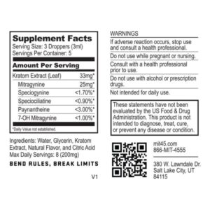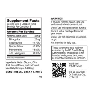 - Potent, Quick Energy Liquid Kratom - 75% Mitragynine Stop choosing between potent, energy-first kratom and a great-tasting liquid. With the Rocket Bomb, you can finally get both. Kratom Extract Info 165mg extract (per bottle) 125mg mitragynine (per bottle) Speciogynine < 1.70% Speciociliatine < 0.90% Paynantheine < 3.00% 7-OH mitragynine < 1.00%