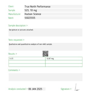 • S23 50 x 10MG – Hudson Science (Certificate of Analysis, Second Image)