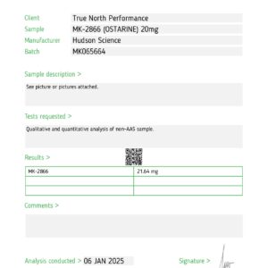 • OSTARINE (MK-2866) 20MG X 50 – Hudson Science (Certificate of Analysis, Second Image)