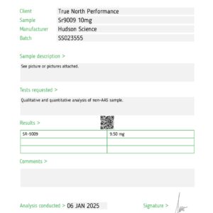 • SR9009 10MG X 50 – Hudson Science (Certificate of Analysis, Second Image)