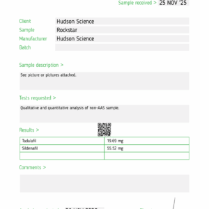 ROCKSTAR 75 – 20MG-55MG (CIALIS + VIAGRA) [ERECTILE DYSFUNCTION] – (Certificate of Analysis, Second Image)