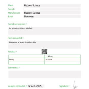 GLP-3 RT 10mg Kit [Next gen fat burner] – Hudson Science ( Certificate of analysis, second image. UPDATED ) New test end of November!