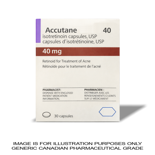 Accutane 40mg delivers pharmaceutical-grade acne control with powerful retinoid action targeting oil glands and inflammation. Each pack contains 30 capsules manufactured to Canadian GMP standards, trusted by professionals for consistent results in managing cystic acne and promoting clearer, healthier skin.