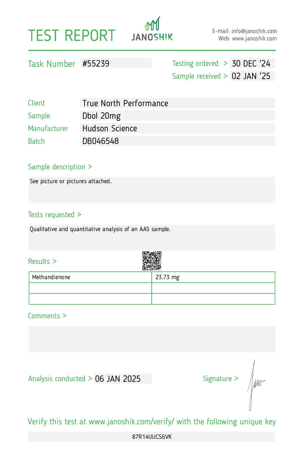 DIANABOL 20MG X 50 – Hudson Science (Certificate of Analysis, Second Image)