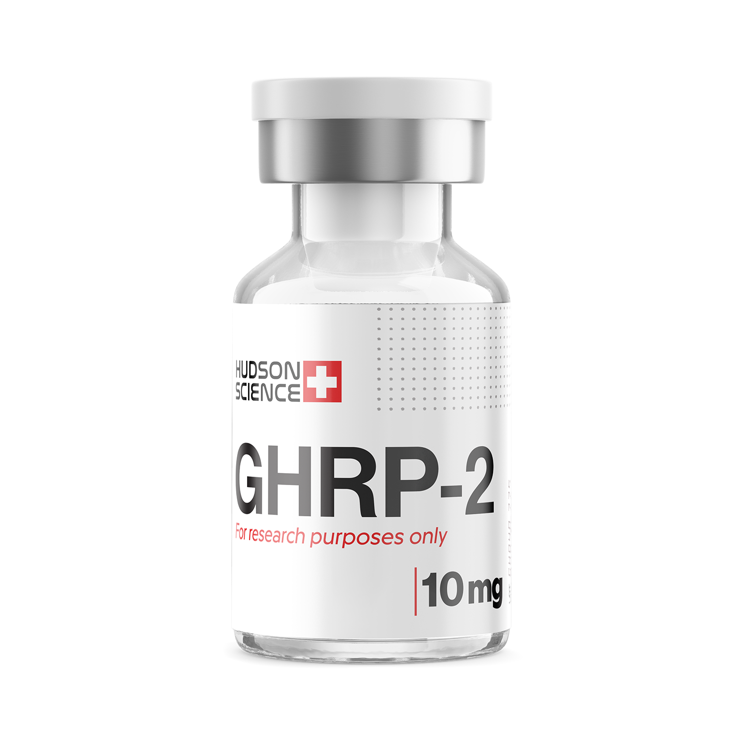 GHRP-2 (Growth Hormone Releasing Peptide-2) 10mg by Hudson Science is a laboratory-grade hexapeptide studied for its effects on growth hormone secretagogue receptor (GHS-R1a) activation, pituitary signaling, and metabolic peptide interactions.