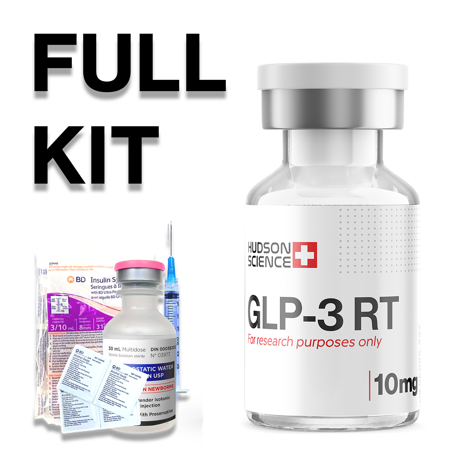 • 10mg GLP-3 RT – lyophilized powder (reconstitution with bacteriostatic water required)