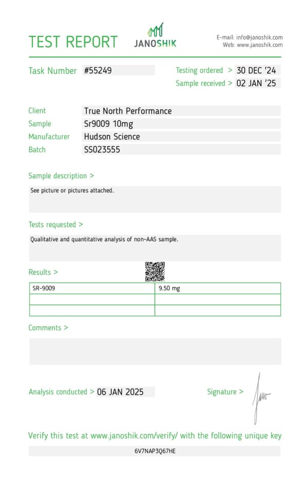 SR9009 10MG X 50 – (Certificate of Analysis, Second Image)Should be back in stock by the second week of October.