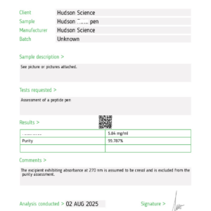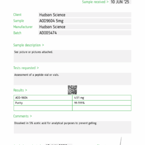 AOD9604 5mg + ACETIC ACID WATER [Targeted fat breakdown] – Hudson Science (Certificate of Analysis, Second Image)