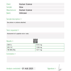 TB-500 10mg [Accelerated healing + recovery] – Hudson Science ( Certificate of analysis, second image )