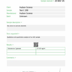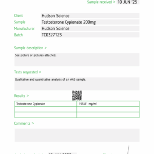 2 PACK SPECIAL TEST D 250 – TESTOSTERONE DECANOATE 250MG/ML – Hudson Science ( Certificate of analysis, second image)