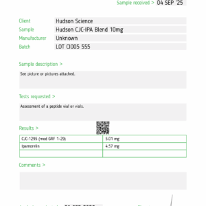 CJC-1295 no DAC 5mg [Pulsed GH release] – Hudson Science (Certificate of Analysis, Second Image)
